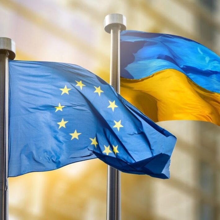 Σημαίες της Ευρωπαϊκής Ένωσης και της Ουκρανίας — Getty Images (2022), προσπελάστηκε από Harvard Law School:  EU-and-Ukraine-flags-GettyImages-1388111835-2400-2048×1365.jpg